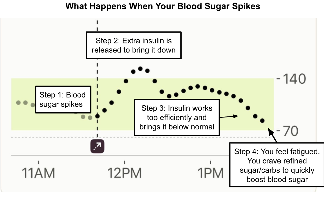 Many people experience mid-afternoon brain fog and fatigue, and it’s often because they unknowingly ate a meal high in refined sugar or carbs that caused their blood sugar to spike and then crash.