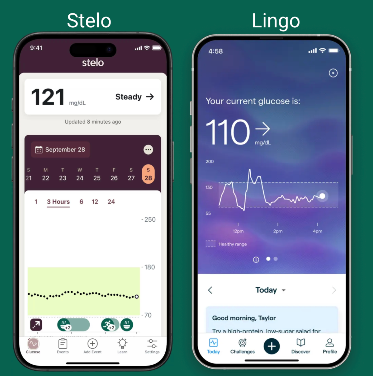 They also both connect to smartphone apps, allowing you to track trends, visualize patterns, and gain insights into how meals, exercise, sleep, and stress affect blood sugar.