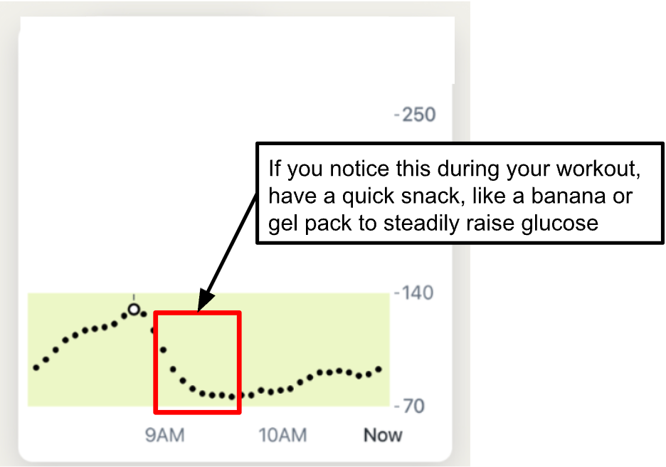 Wearing an OTC CGM can make you aware of when your glucose is dropping during a workout and you can then eat a quick high carb snack (like a banana) to bring your glucose levels back up to a healthy level and maximize performance.